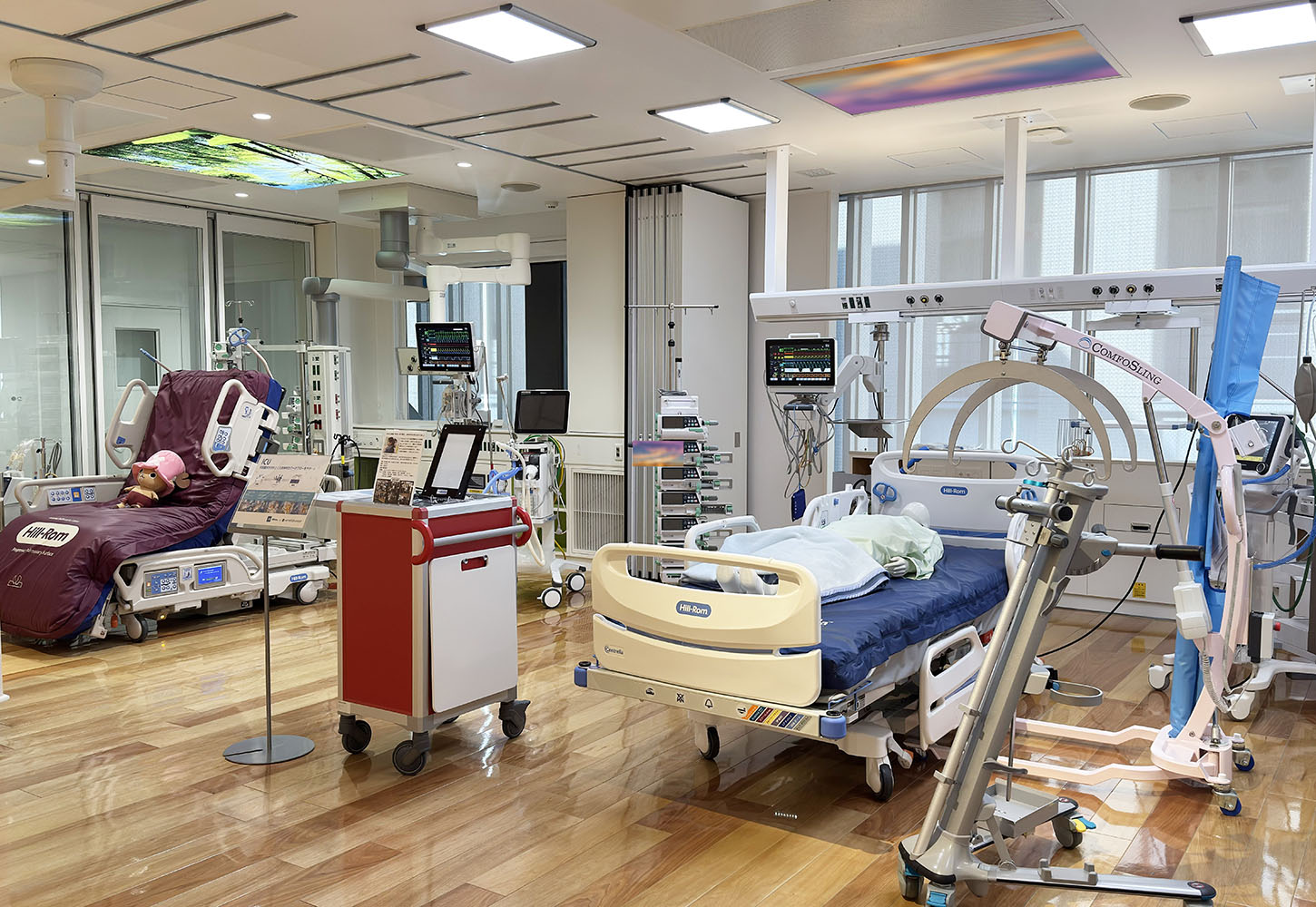 可動パーティションによる15㎡~25㎡の集中治療室(ICU)の空間シミュレーションが可能です。室内の色やデザインはもちろん、天井ユニット、ウォールケアユニット・シーリングペンダントの組み合わせなど、お客様の様々なご要望にお応えします。呼吸リハビリテーション研修、各種トレーニングに利用いただける他、臨床根拠に基づいた理想的なクリティカルケア空間をご提案いたします。
