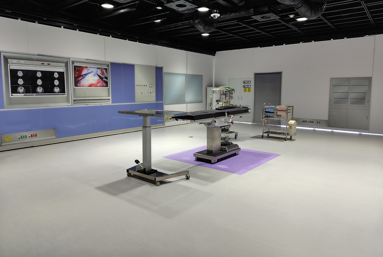 4面の可動壁により、4m×4m ~8m×11m の手術室のリアルな空間シミュレーションが可能です。また、壁面に自由に付け替えられる実寸大の手術室内装器具モデルを使って、室内レイアウトの検証を行うこともできます。